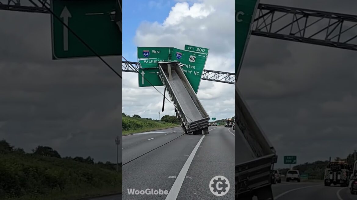 Watch as this trailer gets yanked back to Earth after an unexpected detour onto a road sign! ð #TrailerFail #RoadsideRescue #EpicRecovery #ViralVideo #OnlyInTraffic #RoadsideWoah #TrailerLife