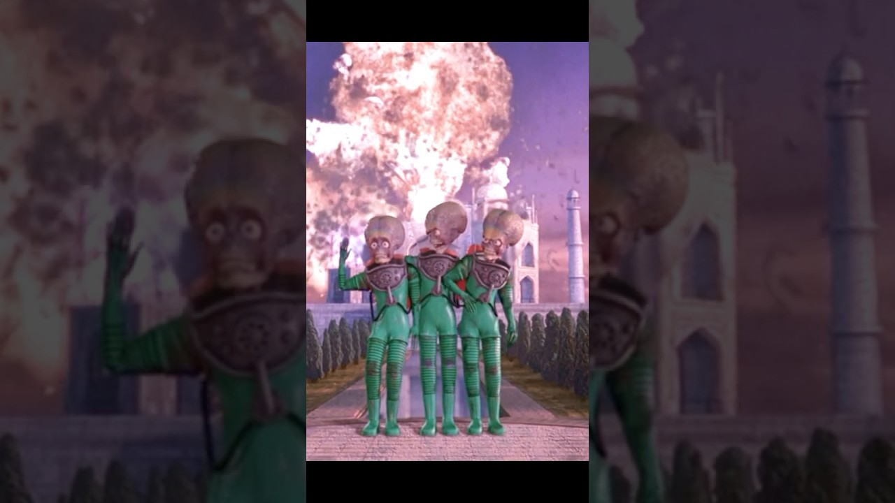 “Icon Swap Invasion: When Martians Remixed Earth’s Monuments!” In this satirical chaos scene from Mars Attacks! (1996): …