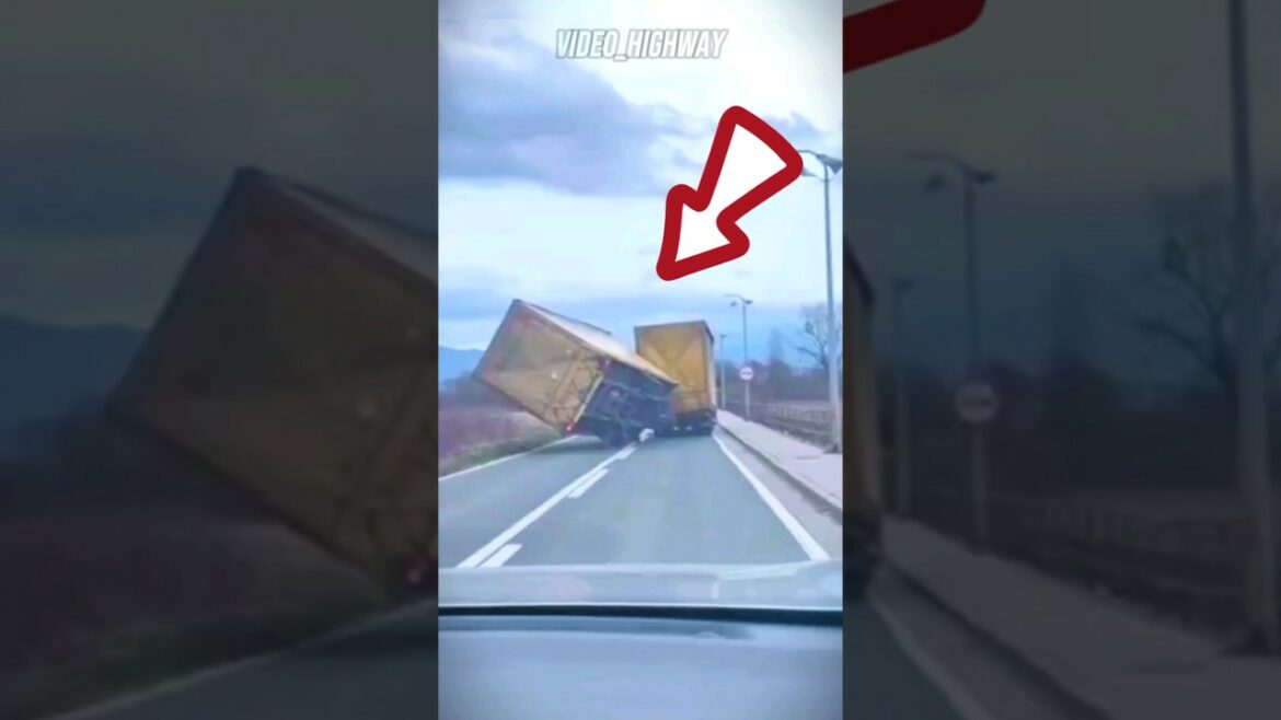 No, this is not a still image. This is the moment when the trailer of the truck literally hung in the air due to very strong wind and insufficient weight on the trailer. The driver of the car captured this moment on camera, but what’s most interesting is what happens next. The truck driver calmly continues driving as if nothing is happening, while the trailer slowly descends back onto the road on its own.